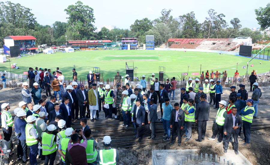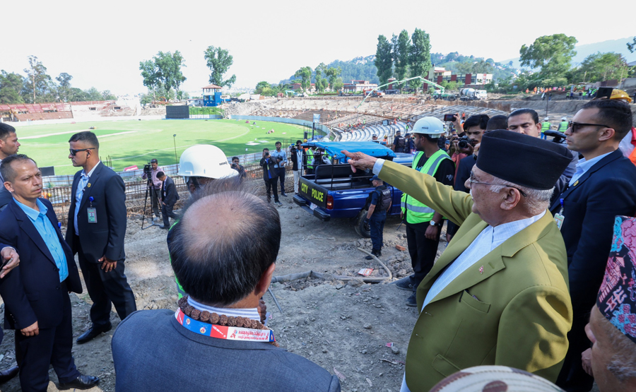 काठमाडौँ, २५ जेठ । प्रधानमन्त्री केपी शर्मा ओलीले कीर्तिपुरस्थित क्रिकेट मैदानमा निर्माणाधीन अन्तर्राष्ट्रियस्तरको प्यारापेट र फ्लडलाइट जडान कार्यको आज स्थलगत निरीक्षण गर्नुभएको छ ।